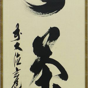 益田孝 円相和歌幅 「座禅して 見てもさとれぬ 世の中に ねたりおきたり くふくうねたり」
