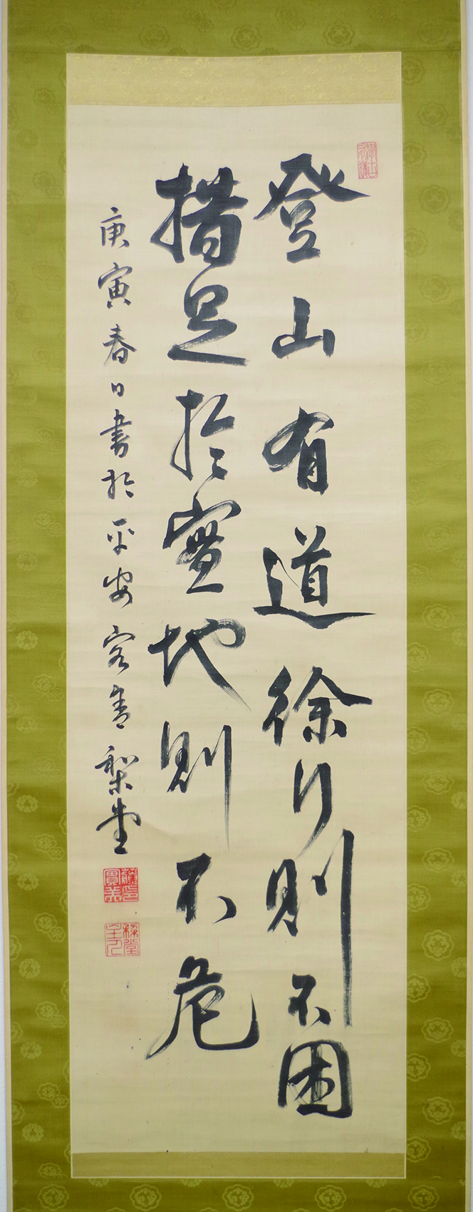 江戸明治期 三条実美 二行書幅 ¥24,200 基本情報 絖本 野村敷明箱 少折 二重箱 軸先 象牙 本紙寸法 126×40 表装寸法 200×62 特記 明治23年最晩年書 政治家、京都生、七卿落の一人 三条実美 二行書幅個 お買い物カゴに追加 商品コード: kowa9948 カテゴリー: 江戸明治期, 軍人・政治家, 新入荷, 書物 関連商品 立花大亀 「一 萬法帰」横幅 ¥49,500 お買い物カゴに追加 宇都宮龍山 七絶三行書幅 ¥39,600 お買い物カゴに追加 大谷句佛 羽箒句賛幅 「造営の日ながき音を僧房に」 ¥16,500 お買い物カゴに追加 東郷吉太郎 「以春風接人」一行書幅 ¥16,500 お買い物カゴに追加