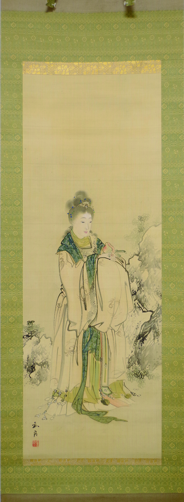 人物画 大原呑舟 西王母図幅 ¥33,000 基本情報 絹本 彩色 軸先 本紙寸法 92×33 表装寸法 177×50 特記 小林荻泉堂旧蔵 江戸後期画家、京都、父呑響、師柴田義董 大原呑舟 西王母図幅個 お買い物カゴに追加 商品コード: kowa9983 カテゴリー: 人物画, 新入荷, 絵物 関連商品 牧島如鳩 鐘馗図幅 お買い求めいただきました。 ¥0 続きを読む 池上秀畝 山茶花雀幅 ¥27,500 お買い物カゴに追加 佐久間鉄園 梧竹清暑図幅 ¥33,000 お買い物カゴに追加 セール 永田春水 竹蔭群雀幅 ¥49,500 ¥44,000 お買い物カゴに追加