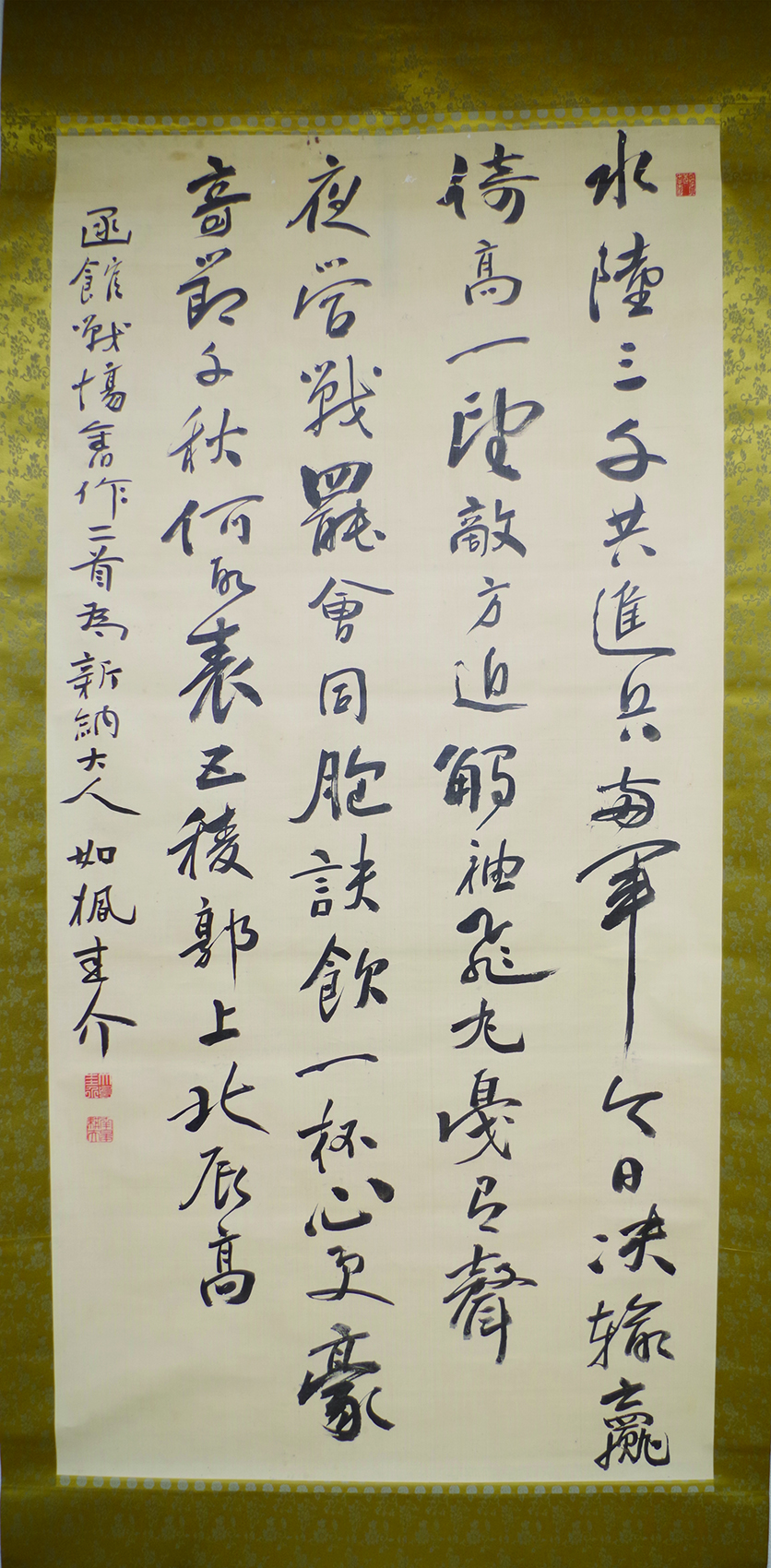 江戸明治期 大鳥圭介 函館戦場旧作二首大幅 ¥33,000 基本情報 絹本 為新納大人 上少虫喰補修少汚 軸先 本紙寸法 157×77 表装寸法 206×99 特記 学習院長、播磨国生、号如楓、五稜郭で新政府軍に抵抗 大鳥圭介 函館戦場旧作二首大幅個 お買い物カゴに追加 商品コード: kowa0338 カテゴリー: 江戸明治期, 新入荷, 書物 関連商品 セール 寺門静軒 七絶二行書幅 ¥44,000 ¥22,000 お買い物カゴに追加 松瀬青々 山吹の句一行書幅 「水をふむ山吹の花の妻木路」 ¥22,000 お買い物カゴに追加 山岡鉄舟 「午飯松間睡足」一行書幅 ¥38,500 お買い物カゴに追加 土方久元 録旧製三行書幅 お買い求めいただきました。 ¥0 続きを読む