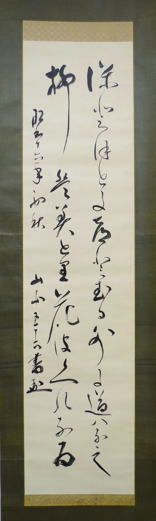 軍人・政治家 山本五十六 国雅和歌二行書幅 「ほどほどに つとむる外に 道はなし 柳はみどり 花はくれなゐ」 ¥396,000 基本情報 紙本 藤本木田箱 補修 軸先 本紙寸法 125×30 表装寸法 197×49 特記 昭和16年初秋書 先賢献茶会記念美術展覧会出陳品 元帥海軍大将、連合艦隊司令長官、真珠湾攻撃を立案 山本五十六 国雅和歌二行書幅 「ほどほどに つとむる外に 道はなし 柳はみどり 花はくれなゐ」個 お買い物カゴに追加 商品コード: kowa0001 カテゴリー: 軍人・政治家, 新入荷, 書物 関連商品 大谷句佛 羽箒句賛幅 「造営の日ながき音を僧房に」 ¥16,500 お買い物カゴに追加 大国隆正 還暦鶴の和歌幅 ¥11,000 お買い物カゴに追加 セール 寺門静軒 七絶二行書幅 ¥44,000 ¥22,000 お買い物カゴに追加 賀茂季鷹 詠池岸有松鶴和歌幅 ¥11,000 お買い物カゴに追加