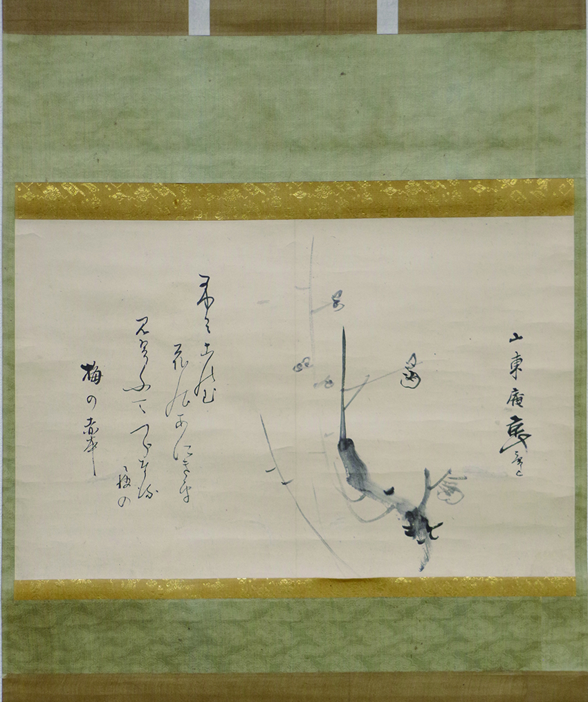 江戸明治期 山東京山 梅自画賛幅 「ふみこのむ 花のあにきを 見給ふて つらなる□の 梅の赤本」 ¥77,000 基本情報 紙本 水墨 中折 欠損補修 軸先 本紙寸法 28×43 表装寸法 104×53 特記 戯作者、京伝の弟、安政5年没 山東京山 梅自画賛幅 「ふみこのむ 花のあにきを 見給ふて つらなる□の 梅の赤本」個 お買い物カゴに追加 商品コード: kowa0104 カテゴリー: 江戸明治期, 新入荷, 書物 関連商品 山本玄峰 「水月」幅 お買い求めいただきました ¥0 続きを読む 橋本海関 七絶三行書幅 ¥19,800 お買い物カゴに追加 高浜虚子 月幅 「ふるさとの月のみなとをよぎるのみ」 ¥38,500 お買い物カゴに追加 井上士朗 不二俳画幅 「澤山な月日が出来て梅の花」 ¥22,000 お買い物カゴに追加