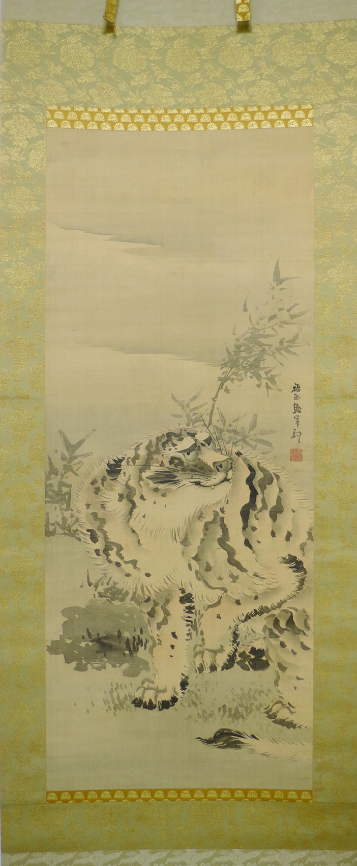 江戸期 岸駒 猛虎図幅 ¥27,500 基本情報 絹本 水墨 軸先 象牙 本紙寸法 104×42 表装寸法 202×62 特記 江戸後期の画家、加賀金沢生、岸派の祖 岸駒 猛虎図幅個 お買い物カゴに追加 商品コード: kowa9964 カテゴリー: 江戸期, 花鳥画, 新入荷, 絵物 関連商品 藤井達吉 初冬柘榴幅 ¥24,200 お買い物カゴに追加 大谷尊由 わらび画賛幅 「かすむ野の 娘は笑ひ 世の栄ゆ」 ¥55,000 お買い物カゴに追加 セール 永田春水 竹蔭群雀幅 ¥49,500 ¥44,000 お買い物カゴに追加 服部有恒 道灌乞蓑幅 ¥33,000 お買い物カゴに追加