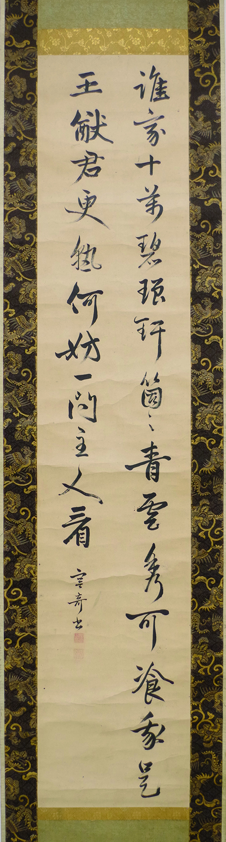 江戸期 池大雅 墨竹図幅 付 宮崎筠圃 二行書幅 ¥770,000 基本情報 紙本 水墨 軸先 竹 本紙寸法 128×25 表装寸法 193×44 特記 『池大雅作品集 作品篇』昭和35年中央公論美術出版所載 『池大雅の芸術』昭和35年本間美術館・山形新聞社主催出陳 大雅40代後期の作 池大雅 墨竹図幅 付 宮崎筠圃 二行書幅個 お買い物カゴに追加 商品コード: kowa9975 カテゴリー: 江戸期, 花鳥画, 新入荷, 絵物 関連商品 宗星石 山水図幅 ¥24,200 お買い物カゴに追加 佐久間鉄園 梧竹清暑図幅 ¥33,000 お買い物カゴに追加 服部有恒 道灌乞蓑幅 ¥33,000 お買い物カゴに追加 茨木杉風 宇治春雪幅 ¥27,500 お買い物カゴに追加