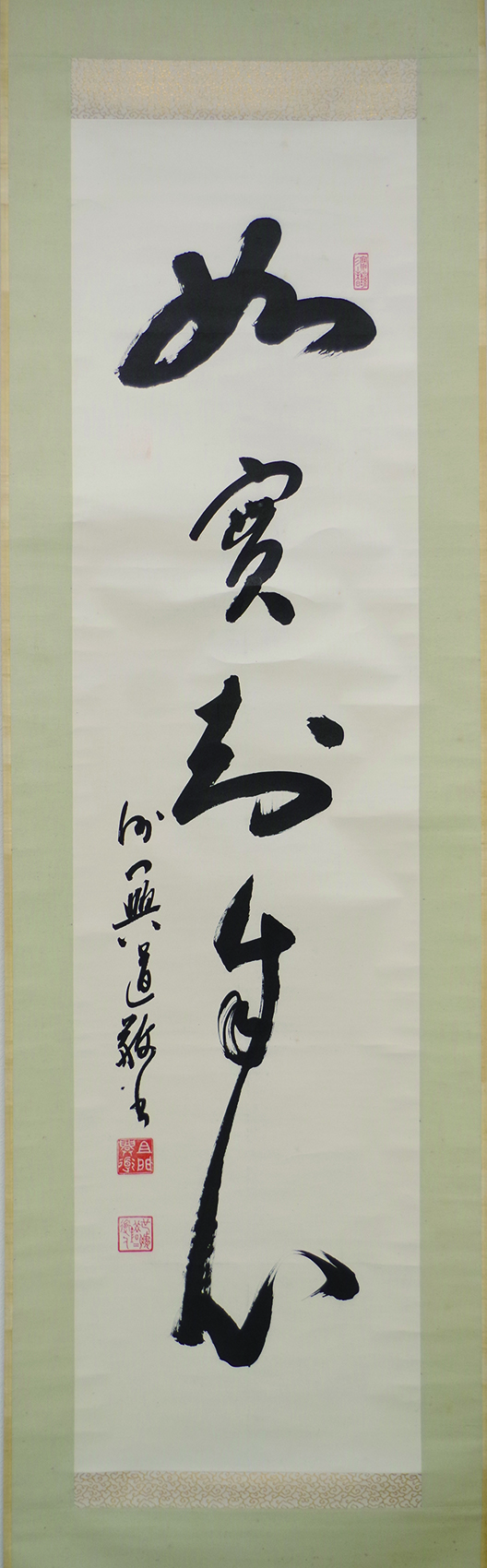 僧侶 沢木興道 「如実知自心」一行書幅 ¥49,500 基本情報 紙本 少折 表具少汚 軸先 本紙寸法 131×34 表装寸法 208×52 特記 曹洞宗僧、「宿無し興道」 沢木興道 「如実知自心」一行書幅個 お買い物カゴに追加 商品コード: kowa9946 カテゴリー: 僧侶, 新入荷, 書物 関連商品 セール 河野小石 春寒七絶二行書幅 ¥14,300 ¥11,000 お買い物カゴに追加 大谷光演 「神力演大光」一行書幅 ¥22,000 お買い物カゴに追加 山岡鉄舟 「午飯松間睡足」一行書幅 ¥38,500 お買い物カゴに追加 猪瀬北江 「夜静寒巌乕嘯」一行書幅 ¥11,000 お買い物カゴに追加