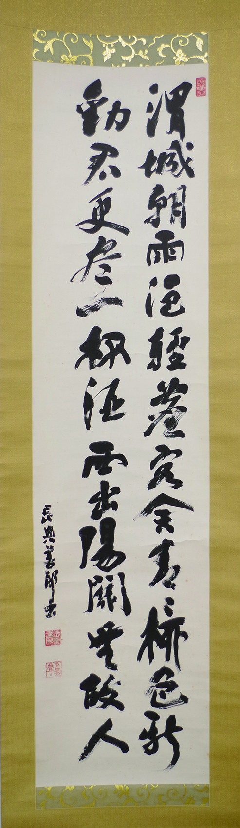 歌人・俳人 長與善郎 渭城朝雨二行書幅 ¥33,000 基本情報 紙本 武者小路実篤箱 少シミ 少折 軸先 本紙寸法 138×34 表装寸法 218×53 特記 白樺派作家、評論家、 長與善郎 渭城朝雨二行書幅個 お買い物カゴに追加 商品コード: kowa0321 カテゴリー: 歌人・俳人, 新入荷, 書物 関連商品 橋本海関 七絶三行書幅 ¥19,800 お買い物カゴに追加 元田肇 七絶二行書幅 ¥11,000 お買い物カゴに追加 宇都宮龍山 七絶三行書幅 ¥39,600 お買い物カゴに追加 谷口雅春 「清心如水晶」一行書幅 ¥22,000 お買い物カゴに追加